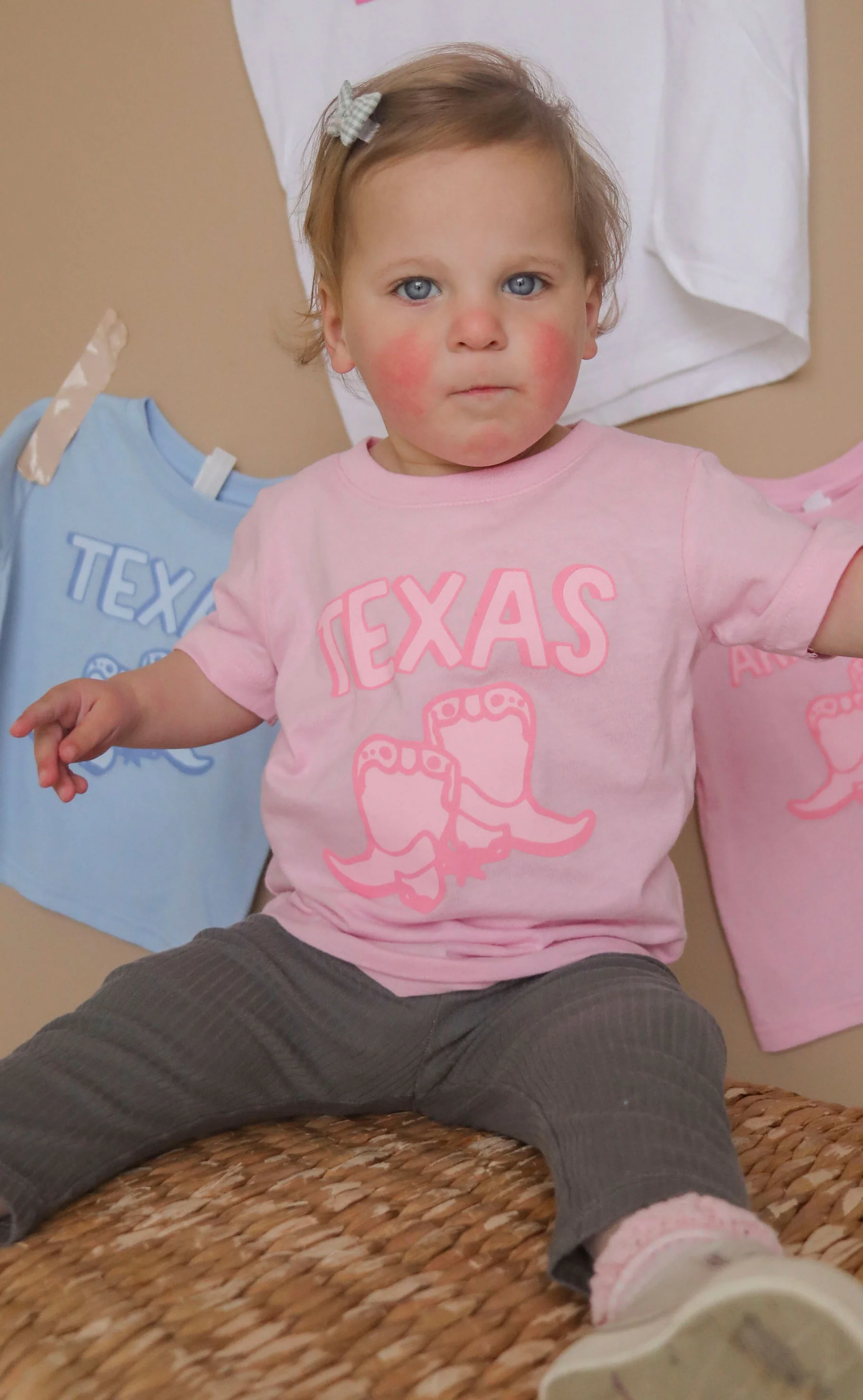 Boot scootin' BABY! How adorable will your kiddo look in this little tee?! The answer is VERY! Whether you are in Arkansas or Texas, your kid with be the cutest on the playground!Â
